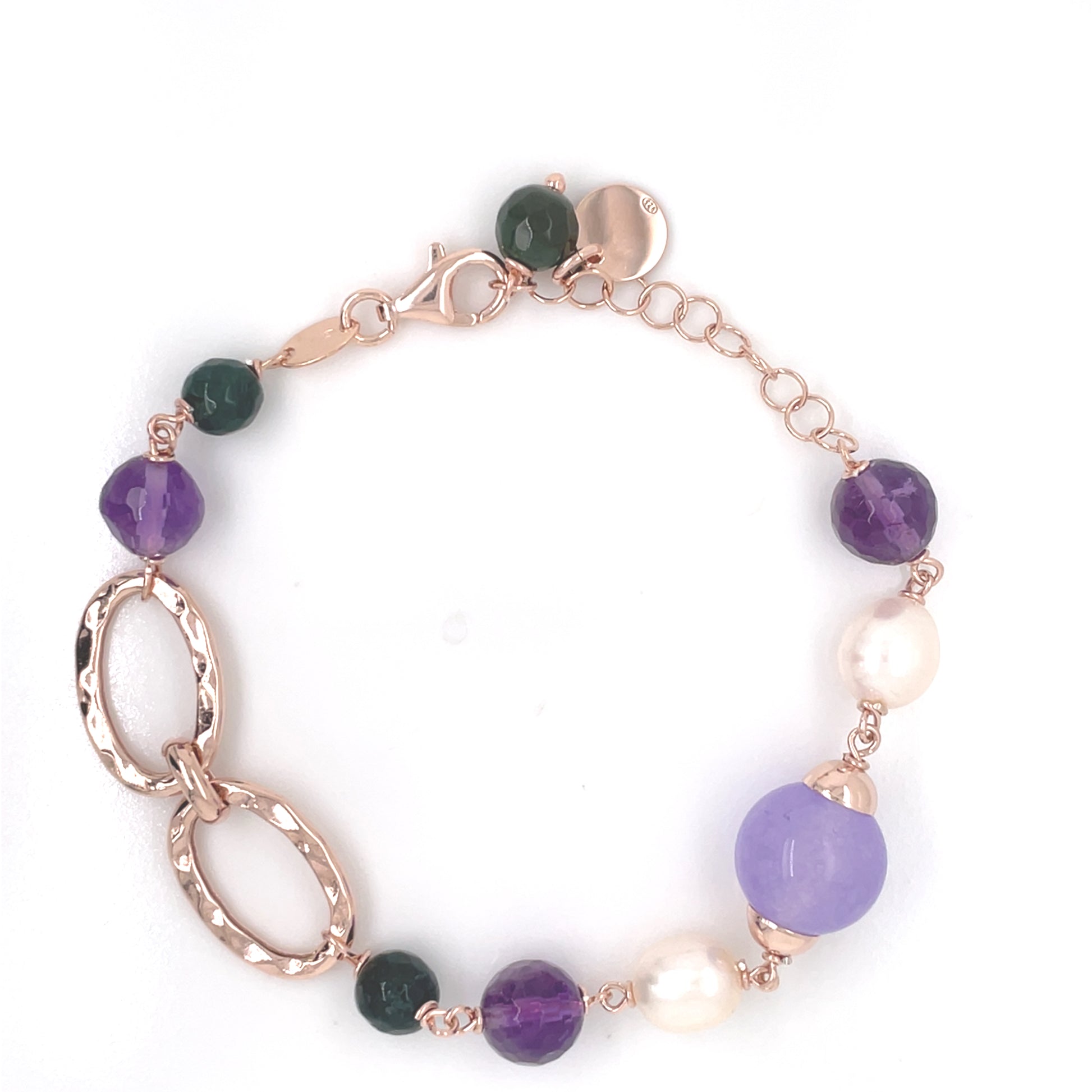 Sterling Silver Rosegold-plated Pearl, Agate & Lilac Jade Bracelet