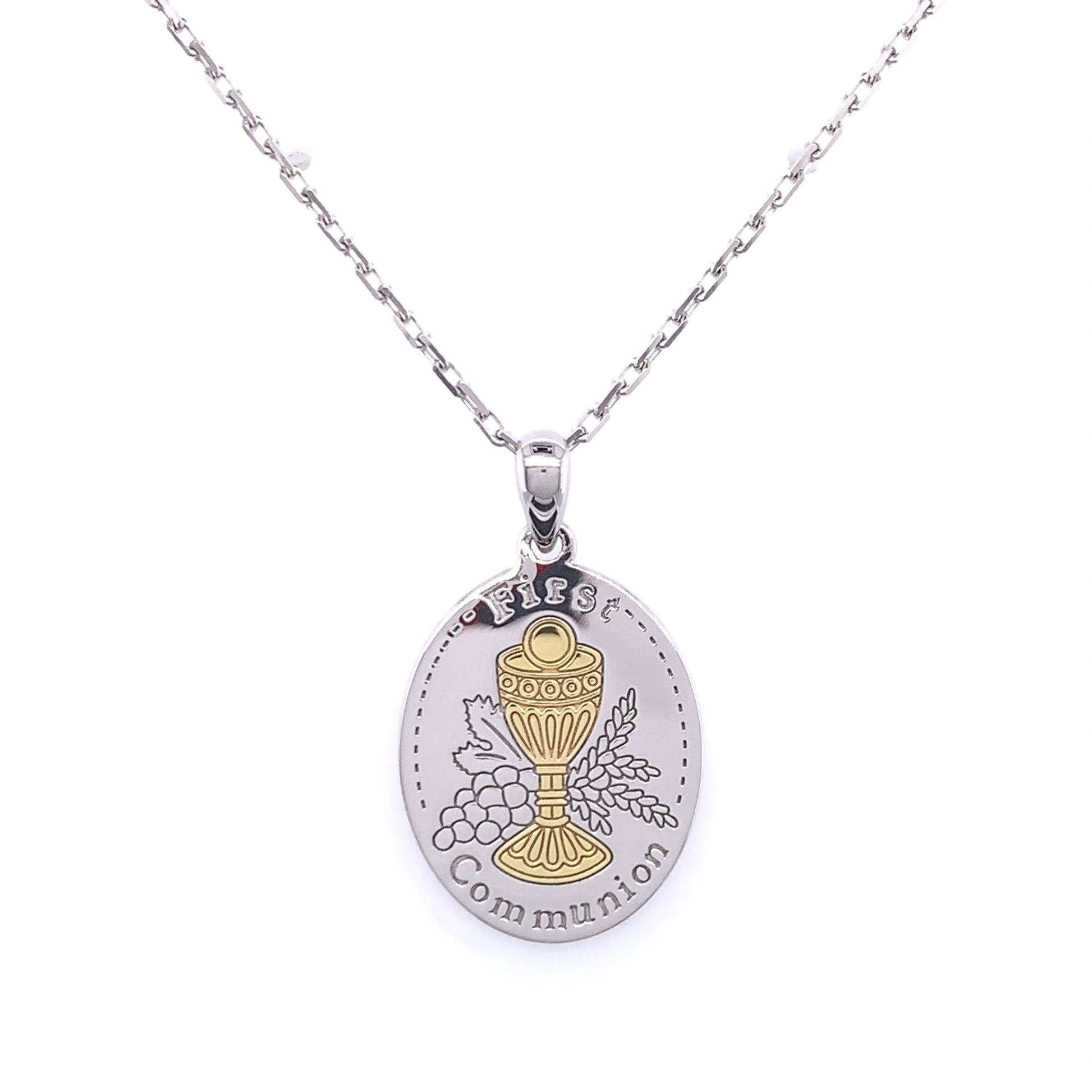 Rhodium plated sterling silver with enamel detail on 18 inch chain.