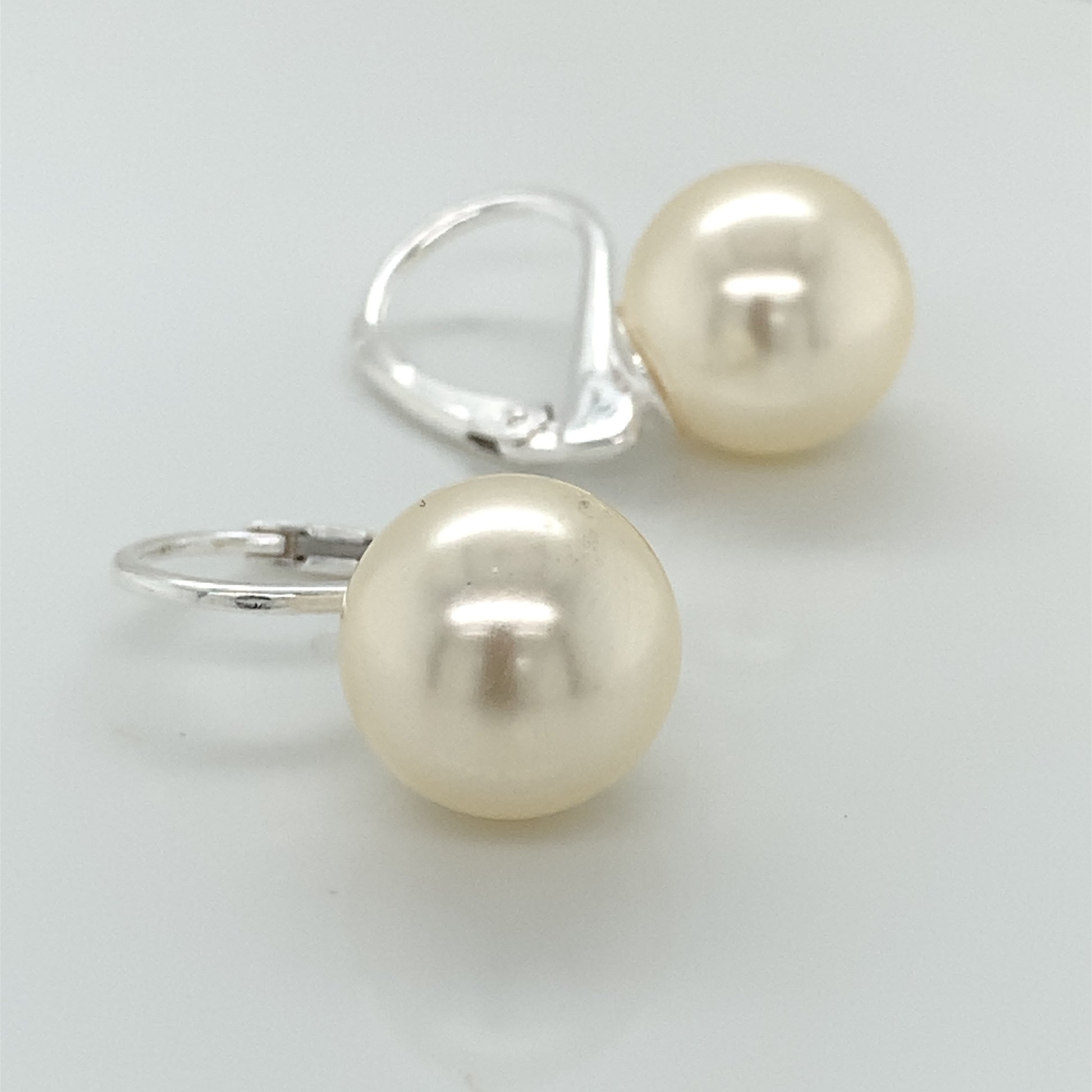 Sterling Silver Simulated Pearl 12mm Drop Earrings.