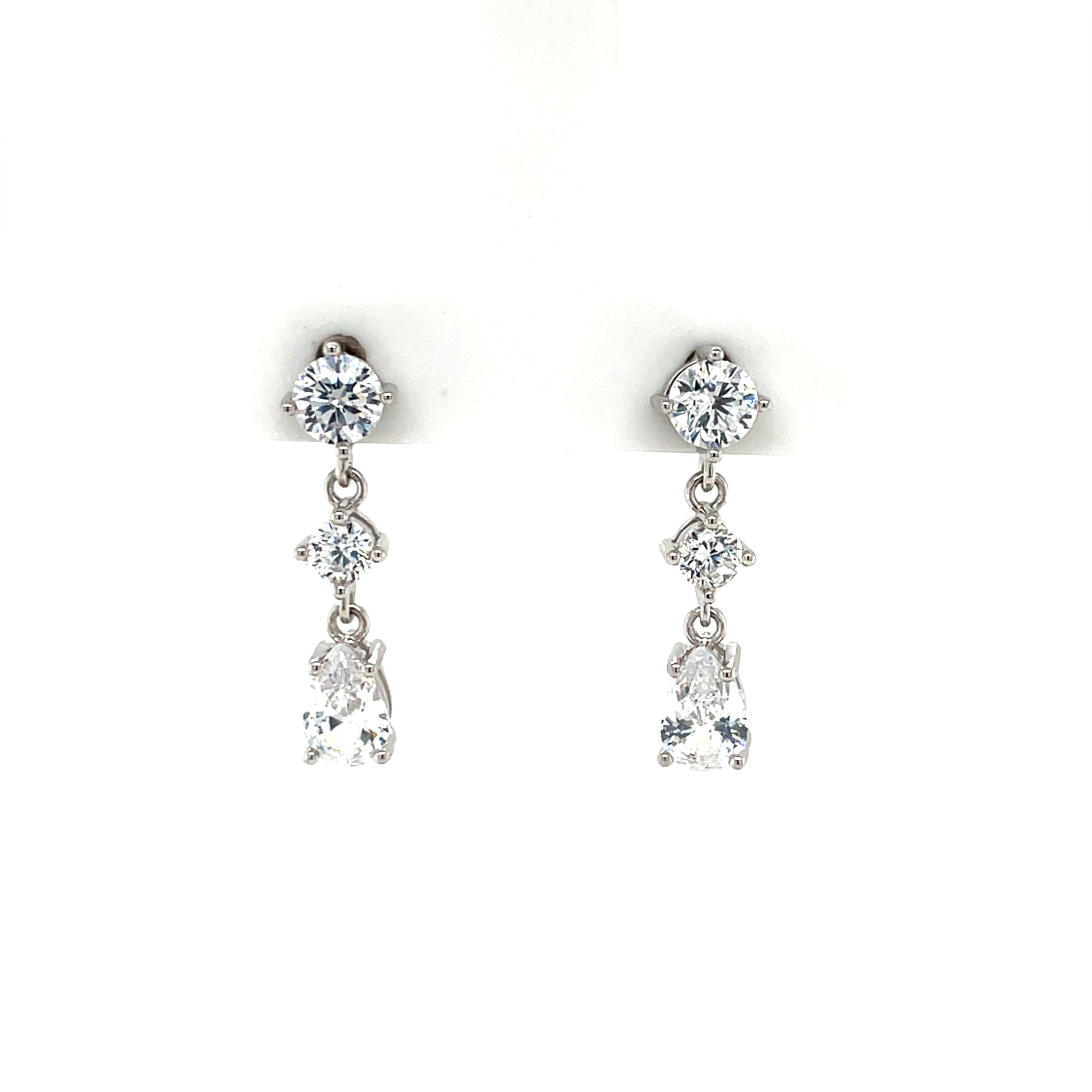 Sterling Silver 3 CZ Drop Earrings SE3520